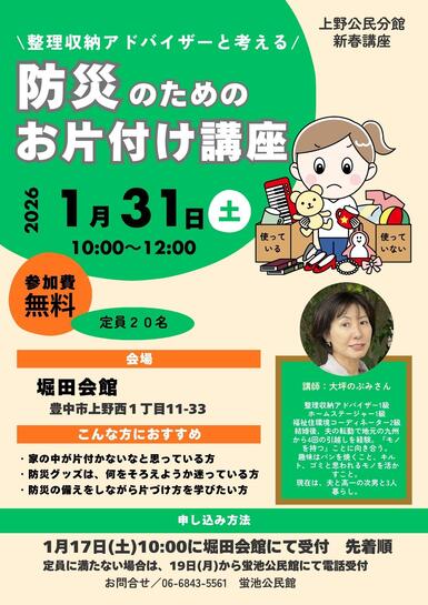 上野公民分館講座「整理収納アドバイザーと考える防災のためのお片付け講座」(1月31日)