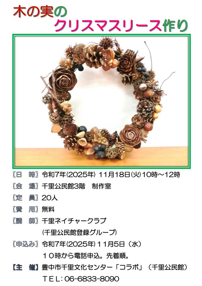 木の実のクリスマスリース作りのチラシはこちら(PDF:611KB)